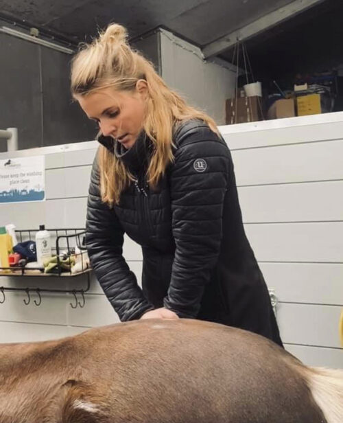 Sanne Mooren van Dierenartscombinatie Zuidoost is de vaste dierenarts hier. Heel fijn om snel overleg met een professional te kunnen hebben als het nodig is. Sanne is gespecialiseerd in tanden en kreupelheden. Daarnaast is zij ook chiropractor. Zij is dan ook degene die hier de tanden van de eigen paarden jaarlijks checkt en behandelt als nodig. Verder is Sanne meestal degene die opgetrommeld wordt als er een trainingspaard is waar verder fysiek onderzoek bij nodig is.