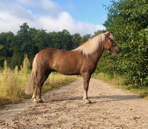 Deze grote, vriendelijke reus zoekt een nieuw mens dat graag verder samen aan het werk wil. Eldur is 7 jaar en 1.47m hoog, flink aan de maat dus en ook stevig gebouwd. Het is een heel lief en zacht paard dat altijd naar je toekomt en erg van aandacht houdt.