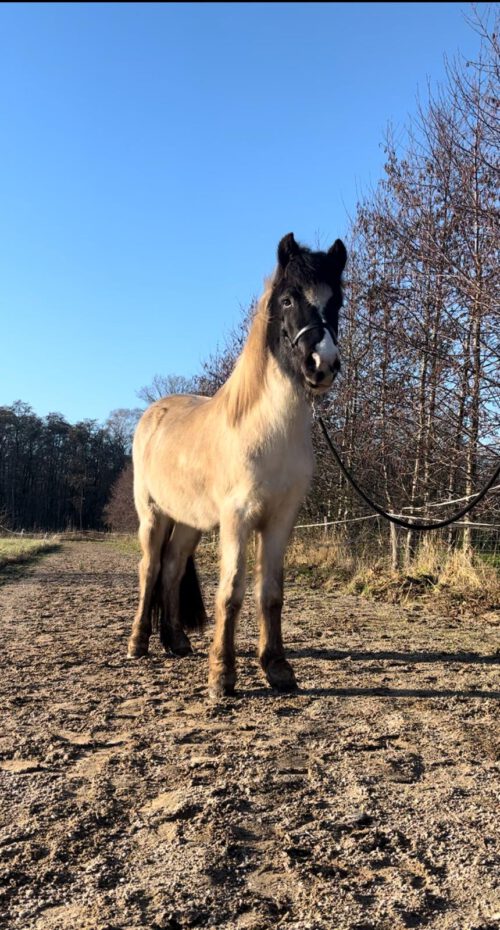 Deze grote, vriendelijke reus zoekt een nieuw mens dat graag verder samen aan het werk wil. Eldur is 7 jaar en 1.47m hoog, flink aan de maat dus en ook stevig gebouwd. Het is een heel lief en zacht paard dat altijd naar je toekomt en erg van aandacht houdt.