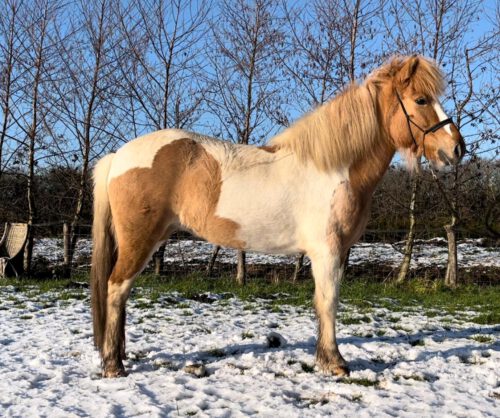 Momenteel staat ze hier om vast een kleine basis op de grond te leggen en een nieuw thuis te vinden. Ze is braaf bij de hoefsmid, dierenarts, etc. Ook op de trailer is geen probleem voor deze jongedame. Sæla is nooit ziek geweest en heeft geen eczeem. Ze leert nu wat kleine oefeningen op de grond en pakt dit super snel op, ze is heel leergierig!