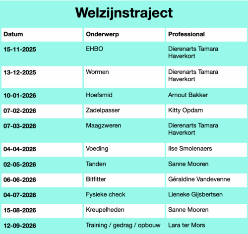 Dus, wil jij het beste voor je paard? Wil je jezelf ontwikkelen en zo veel mogelijk leren om het welzijn van je paard te optimaliseren? Dan is het welzijnstraject zeker iets voor jou!